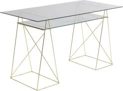 - Set aus zwei filigranen Tischböcken aus Stahl und mit Messing beschichtet