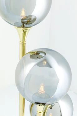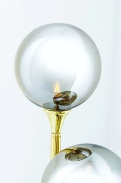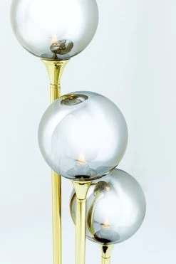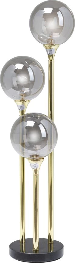 - Glamour auf edle Art und Weise: hochwertige Tischleuchte mit handgearbeitetem Marmorfuß und drei runden Schirmen aus getöntem Glas