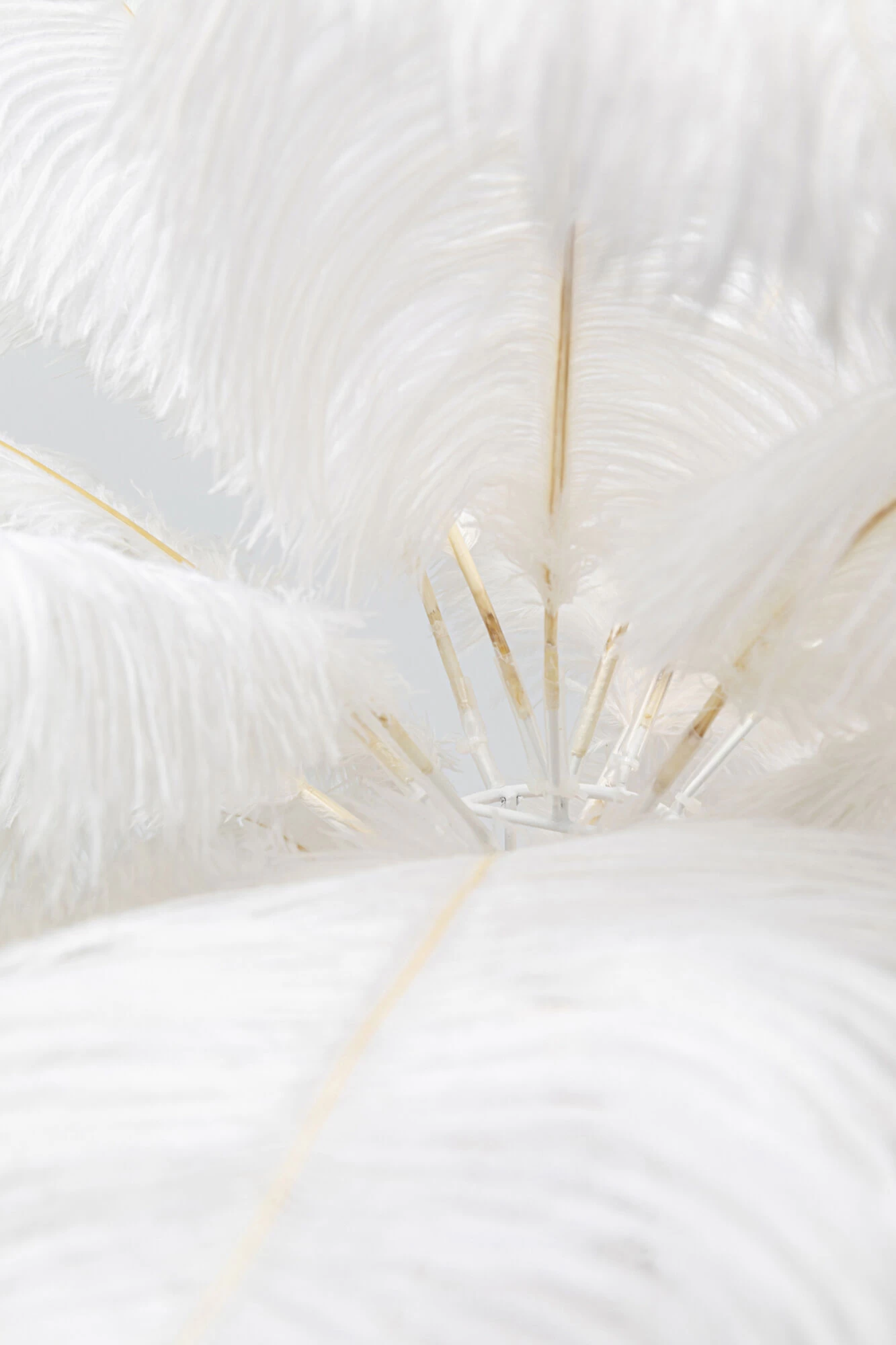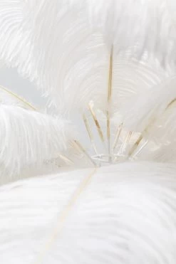 - Goldene Tischleuchte mit weißen, echten Straußenfedern 60x50x50cm (H/B/T)
