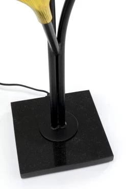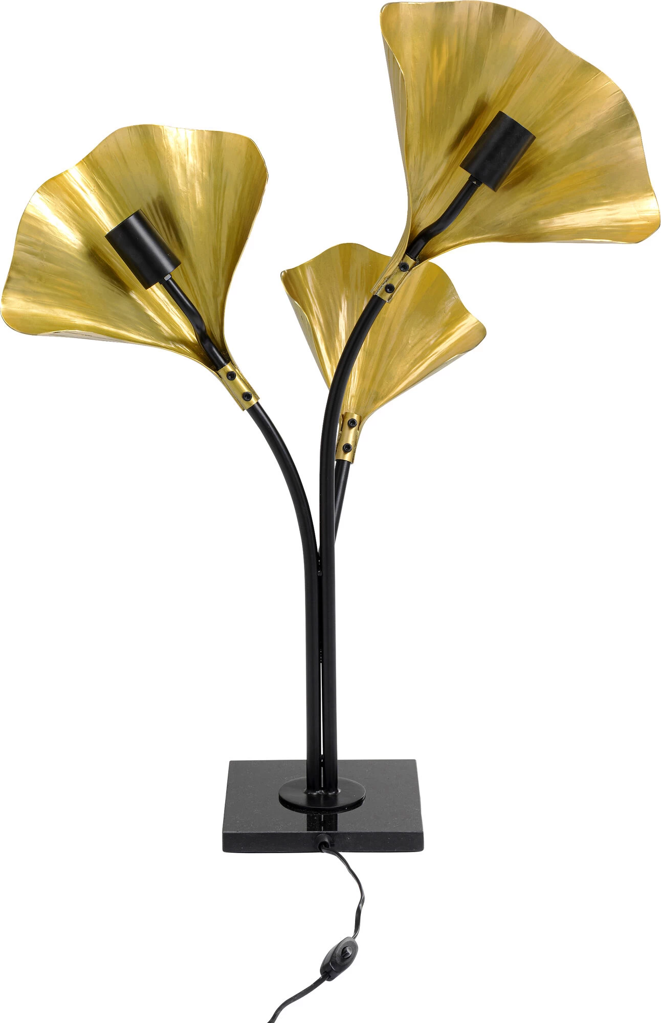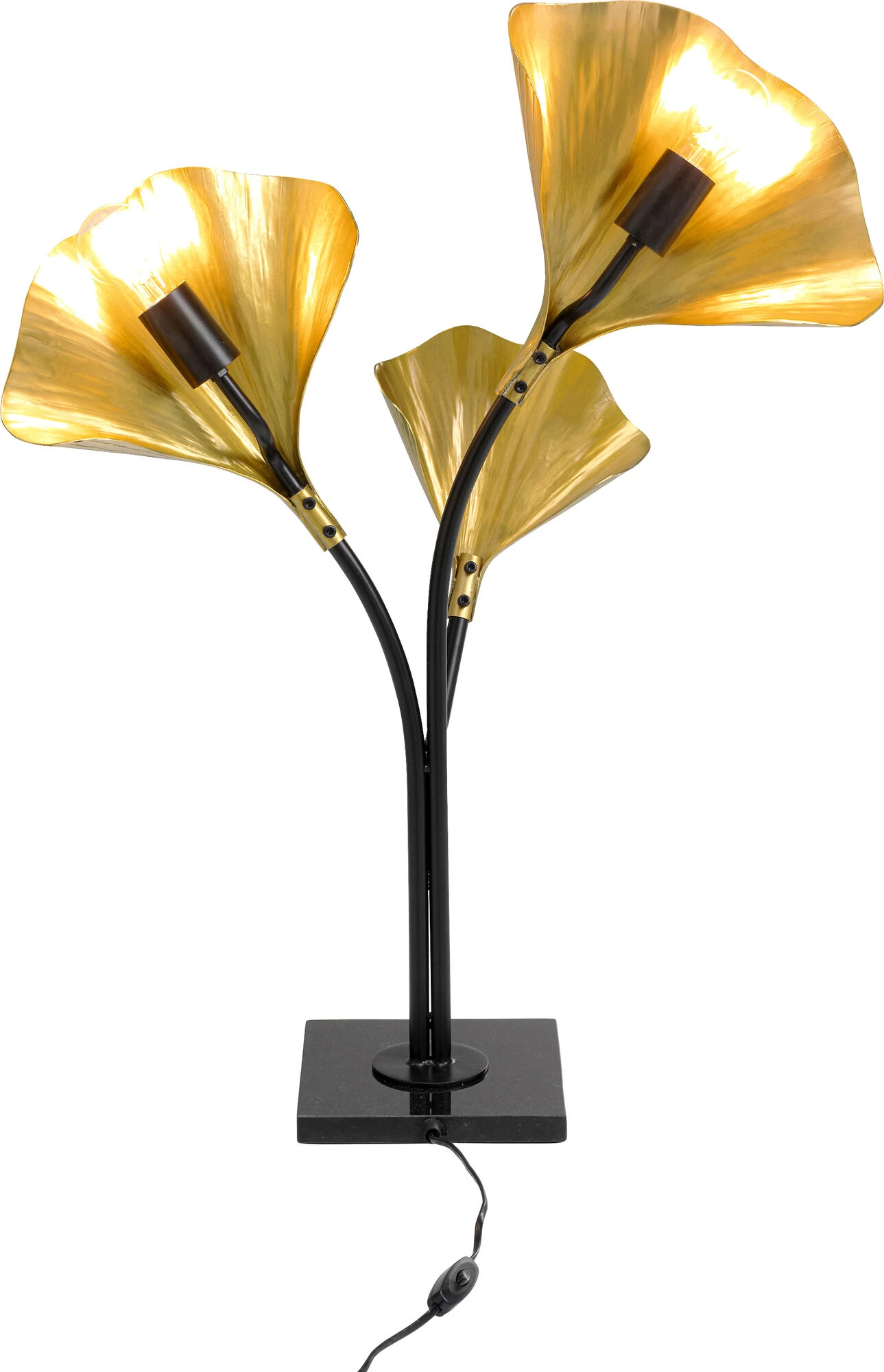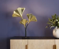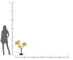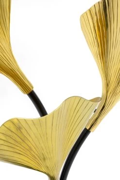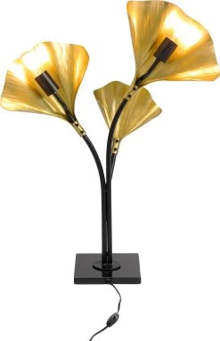 - Hohe Tischleuchte mit drei Armen und goldfarbenen Leuchtenschirmen in Form von Ginkgo Blättern