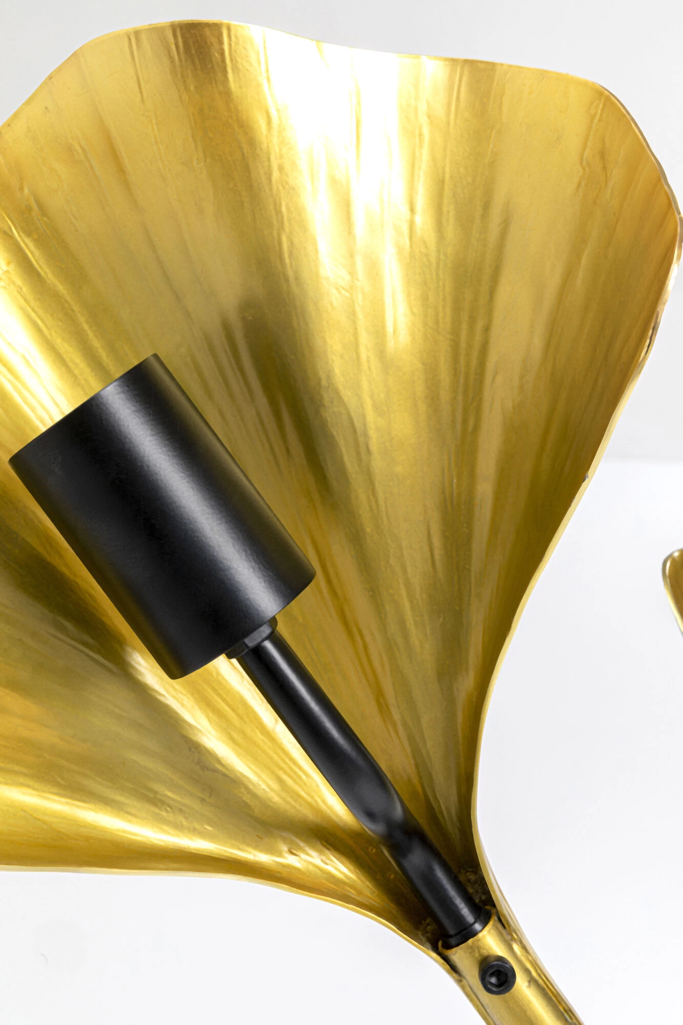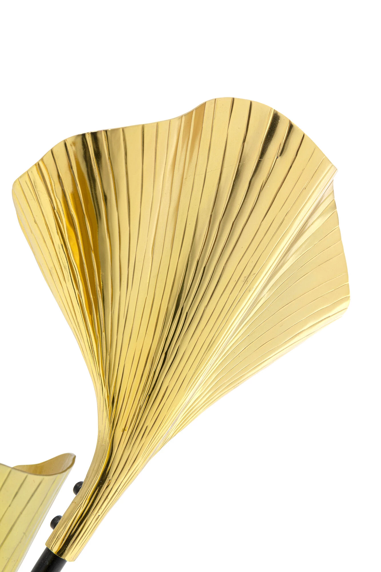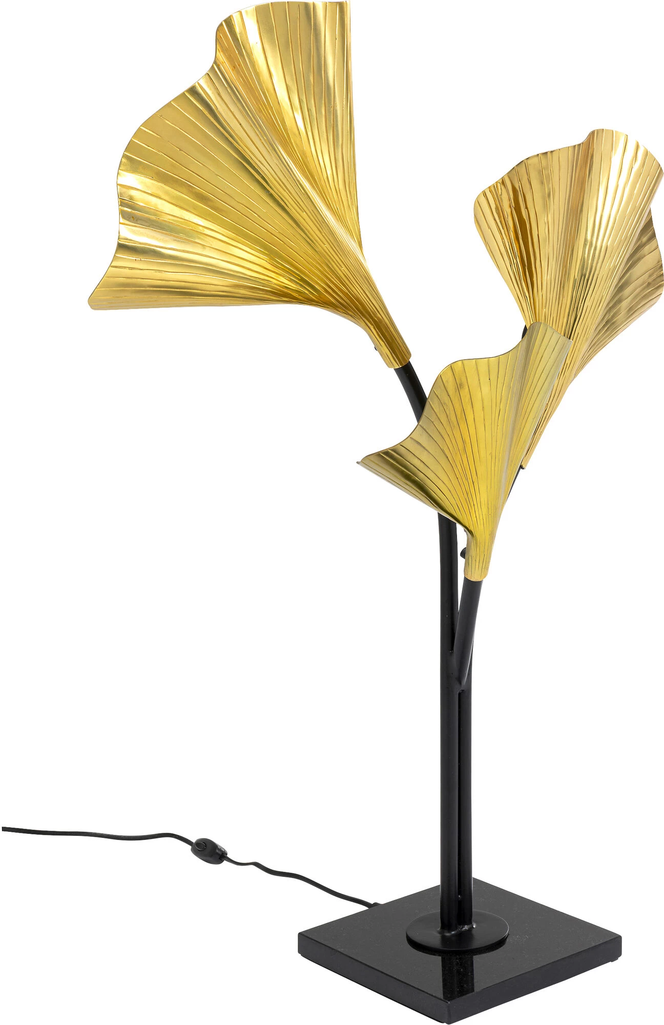 - Hohe Tischleuchte mit drei Armen und goldfarbenen Leuchtenschirmen in Form von Ginkgo Blättern