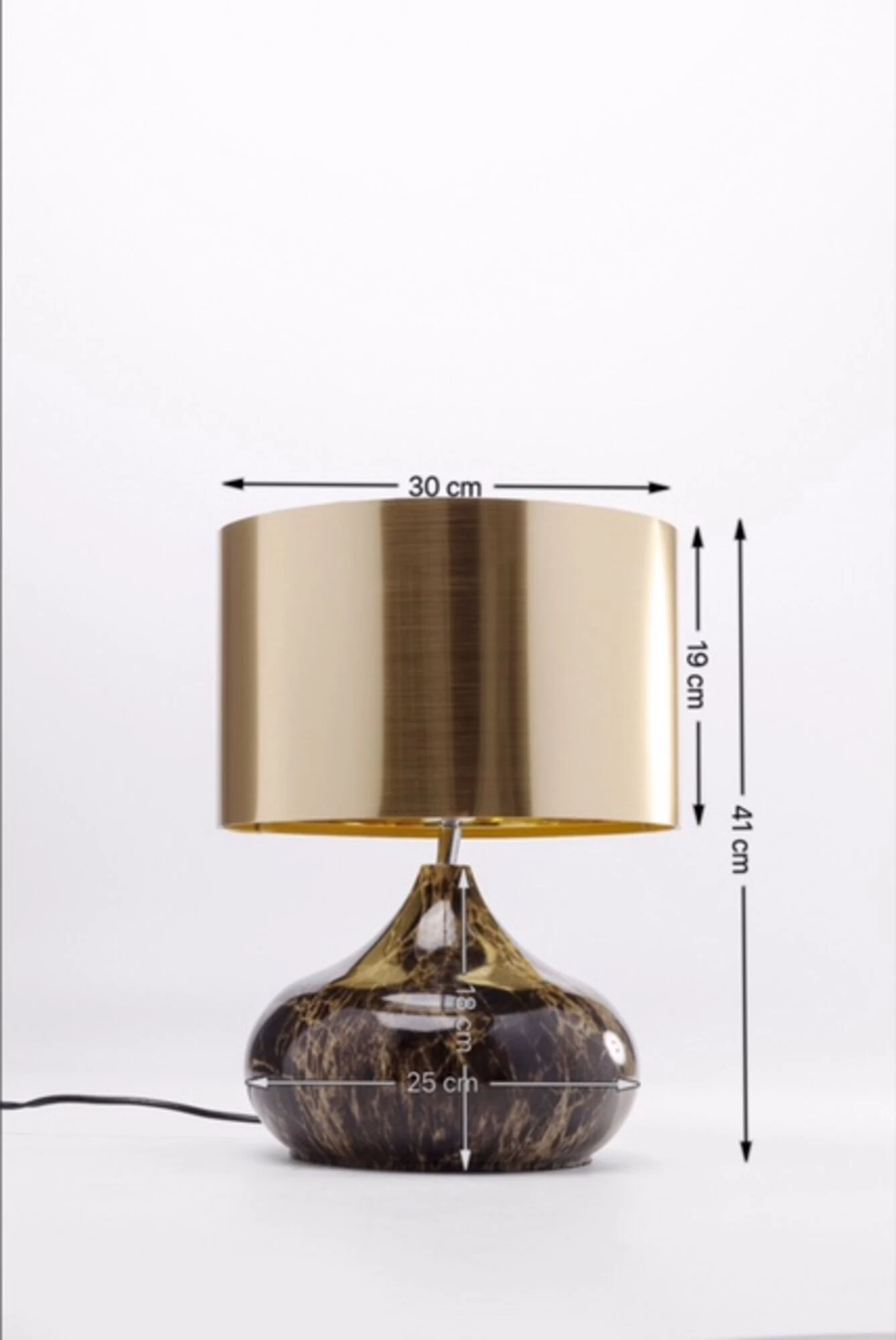 - Mittelgroße Tischleuchte in warmen Gold- und Brauntönen mit dezentem Glamour
