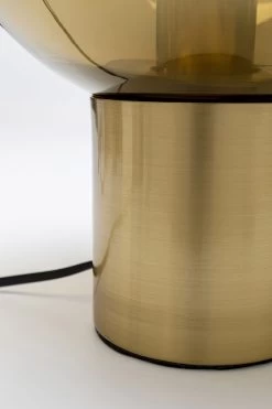 - Messing und Glas: Tischleuchte mit Messingsockel und gold-gefärbtem, organischem Leuchtenschirm