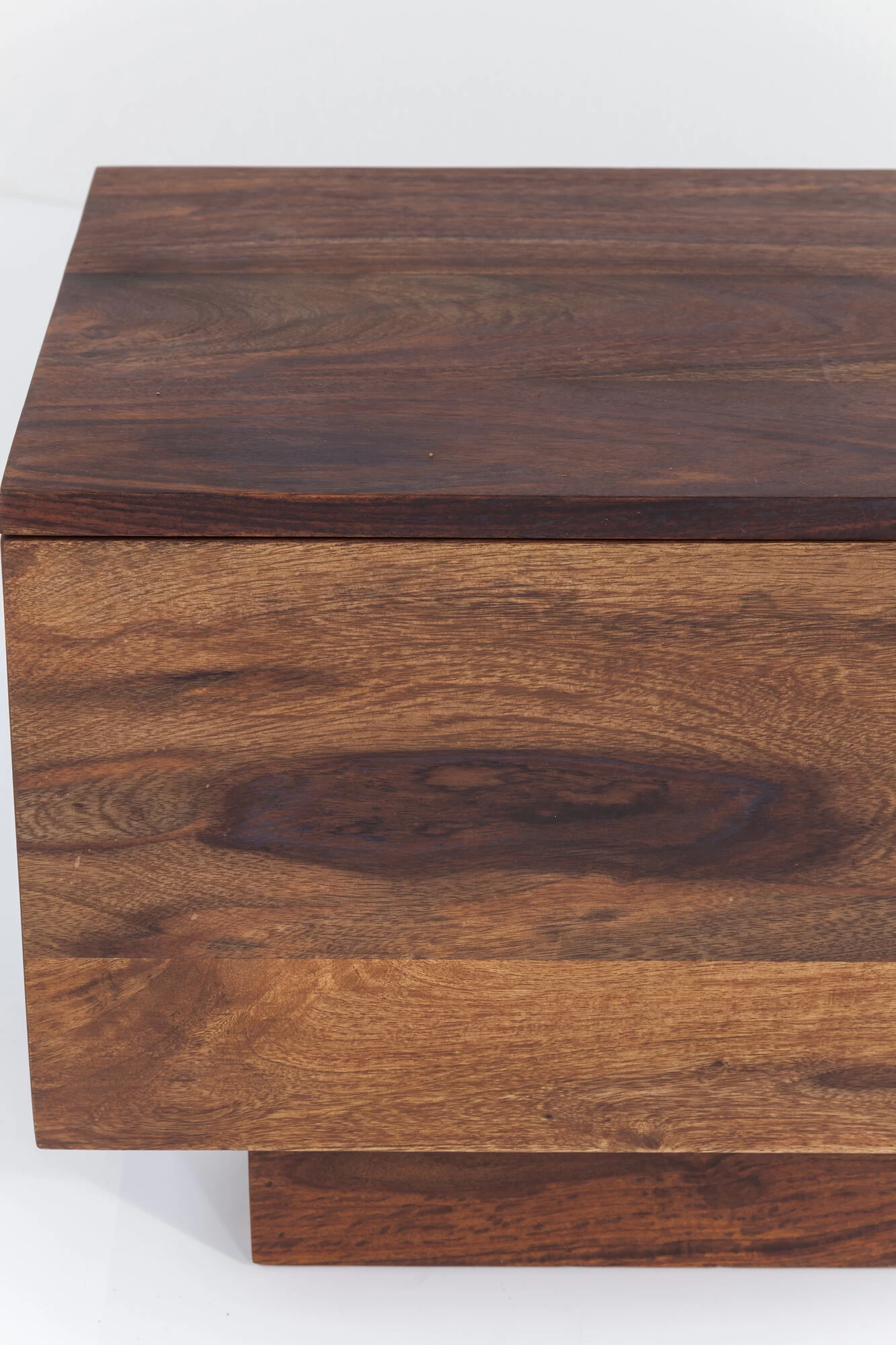 - Niedriges Sideboard aus Echtholz in kubischer Form mit zurĂĽckgesetztem Sockel – eine klare Sache fĂĽr Design-Puristen
