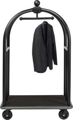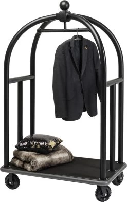- Flexibel einsetzbar: luxuriöser, mattschwarzer GepÀckwagen auf Rollen im Grandhotel-Style