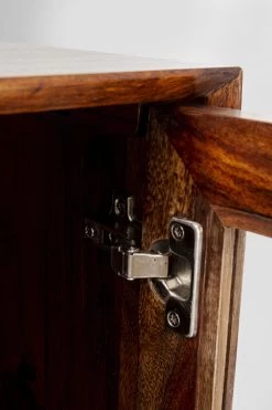- Funktional: Flaschenhalter und Schübe hinter den Glastüren, vier Ablagefächer hinter den Holztüren